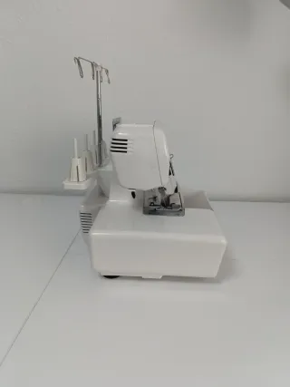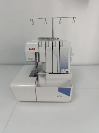 Máquina remalladora de la marca Alfa, modelo 8703. Es un electrodoméstico de costura con un diseño moderno y funcional. Se incluye bolso para transportar - Color blanco. - Incluye compartimento para residuos.