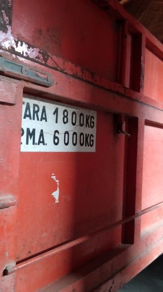 Remolque agrícola de color rojo, en buen estado. - Capacidad de carga: 1800kg (tara) y 6000kg (carga máxima). - Marca: Herrera. - Número de matrícula: 25.