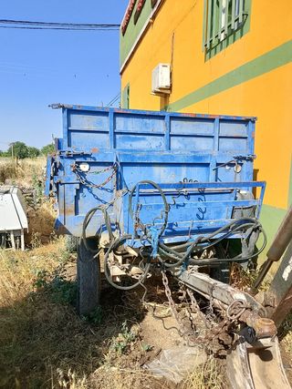 Remolque agrícola en buen estado, ideal para tareas agrícolas. - Remolque de color azul. - Estructura de metal resistente. - Dispone de cadenas de seguridad. - Se encuentra en buen estado general.