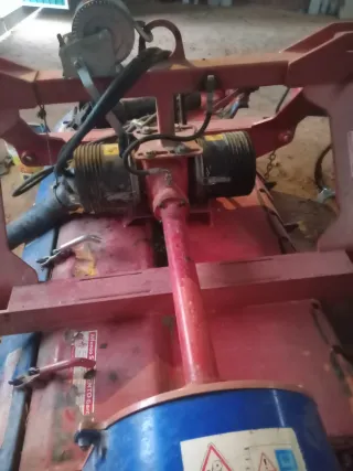 Trituradora de restos de poda de la marca SARMIENTO. Reversible y con doble alimentador. En perfecto estado y lista para trabajar. Incluye cardan para toma de fuerza. - Color rojo y azul. - Estructura metálica.