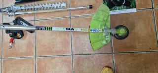 Desbrozadora Vito 4 en 1 con múltiples accesorios para el cuidado del jardín. - Incluye cortasetos, podador y disco. - Mango ergonómico para mayor comodidad. - Diseño ligero y fácil de manejar. - solo se a utilizado la sierra de altura 2 depósitos de gasolina - la desbrozadora 10 minuto - El cortasetos ni lo e montado