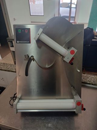 Laminador de masa profesional de la marca PIZZAGROUP. - Fabricado en acero inoxidable. - Panel de control con botones de inicio y parada. - Rodillos de gran diámetro para un laminado uniforme. Solo se ha utilizado un año.
