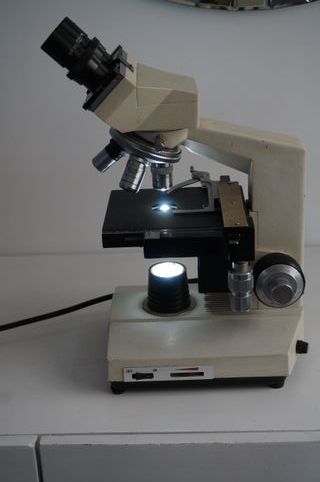 Microscopio binocular de laboratorio, cabezal giratorio, luz led con regulacion de intensidad