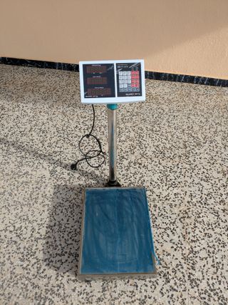 Báscula de plataforma marca Steinberg con pantalla digital y teclado numérico. Modelo SBS-PF-60/20. Pesa hasta 60 Kg con precisión de 20 gramos. Sólo recogida en persona. - Plataforma de pesaje amplia. - Pantalla LED con información de peso, precio y total. - Teclado para introducir datos. - Poste de soporte metálico.