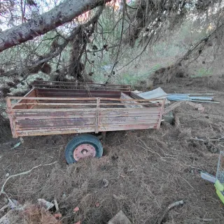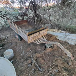 Remolque agrícola de color verde con volquete y freno hidráulico. Se vende remolque agrícola de la prestigiosa marca Vunique, modelo Trunque H-1500,con 1.500 kg de Masa Máxima Autorizada (MMA). Tara o peso en vacío:434 kg Dimensiones:2 metros * 1'5 metros Tipo: T3 (apto para tractor) Extras y estado Volquete hidráulico: facilita la descarga de tierra, leña o material agrícola. Freno hidráulico: mayor seguridad en pendientes y transporte de carga. Ruedas todoterreno de tacos, en excelente estado. Sin ITV pero en buenas condiciones Uso muy ocasional,bien conservado.