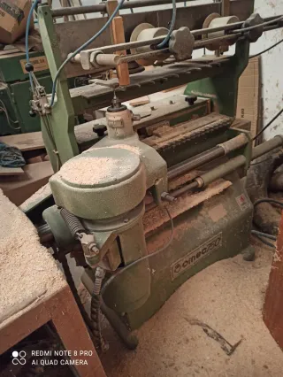 Máquina para hacer uniones de cajones. - Modelo Omec 750. - Color verde.