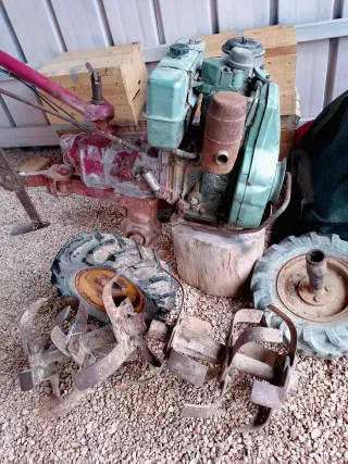 Vendo Mula mecánica con motor y accesorios,parado a la interperie por muchos años ,para reparar o piezas,de ahí su precio, para más detalles escribeme. - Incluye rotavator para arar. - Se acompaña de dos ruedas,de cambiar los neumáticos. - Motor de combustión gasoil.