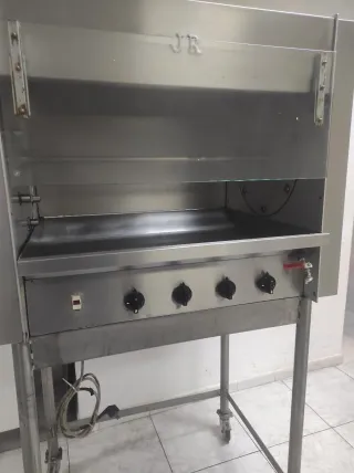 Asador de pollos de la marca JR, ideal para negocios de hostelería. - Fabricado en acero inoxidable. - Cuatro mandos de control. - Interruptor de encendido/apagado. - Grifo dispensador. -7 espadas - mesa de acero inoxidable