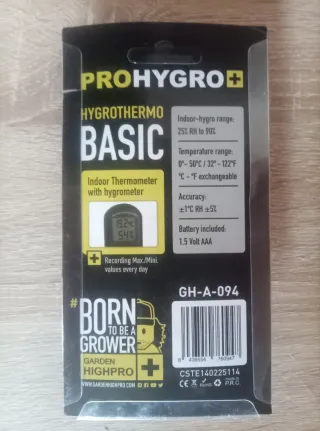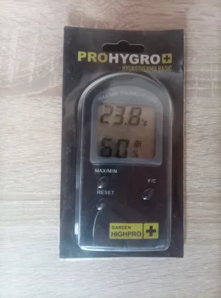 Controla el clima de tu hogar o cultivo con precisión Este termohigrómetro digital PROHYGRO+ mide la temperatura y la humedad relativa en interiores, ideal para mantener ambientes saludables, cuidar plantas o mejorar tu confort diario. 🌡️ Rango de temperatura: 0°C a 50°C (también en °F) 💧 Rango de humedad: 25% a 90% RH 📊 Función MAX/MIN: registra los valores máximos y mínimos cada día 🔋 Incluye pila AAA ✅ Precisión garantizada: ±1°C / ±5% RH ✅ Pantalla clara y botones intuitivos ✅ Marca especializada en cultivo interior: Garden HighPro Perfecto para habitaciones, oficinas, invernaderos, caravanas...