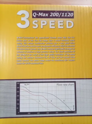 Extractor Q-Max 200/1120 – Silencioso y potente ¿Buscas un extractor profesional a precio de ganga? Este modelo Q-Max 200/1120 viene de un grow shop que cerró, por eso lo ofrecemos a precio rebajado. ¡Oportunidad única! Características destacadas: - 3 velocidades integradas: • Velocidad 1: 686 m³/h • Velocidad 2: 943 m³/h • Velocidad 3: 1120 m³/h - Motor alemán Max-Fan PRO SERIES - Carcasa metálica con aislamiento acústico - Sistema rotor-estator 3D patentado: más caudal, menos ruido - Cumple normativa ErP 2015 (UE) - Listo para colgar, instalación sencillo En las últimas fotos muestro precio en tiendas.