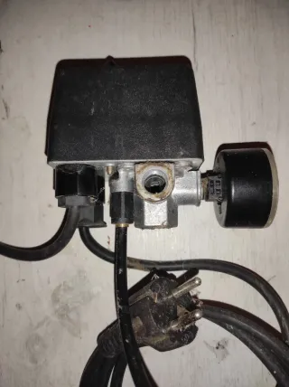 Presostato Condor modelo MDR 1-EA/11. De segunda mano Voltaje: 250 V, Corriente: 120 A AC-3, Presión: 11 bar, Certificación: CE, EN 60947-4-1, Fabricado en Alemania. Con cable y enchufe monofásico, y con manómetro indicador de presión de salida.