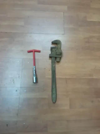 - Llave de bujías con mango en T, hexagonal n 16 , - Llave de perro ajustable.