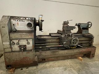 Torno paralelo marca TADU modelo EN-300 Dia. sobre bancada 900mm Distancia entre puntos 1500mm Caña 59mm Torreta estandar 4 posiciones Plato 4 garras dia. 500mm