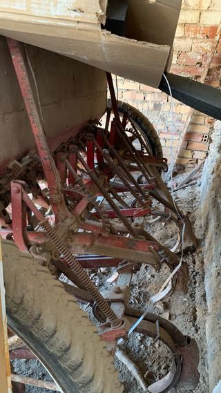 Antigua Sembradora marca Lamusa. - Estructura metálica. Tiene 2,40m de ancho y 1,40m de alto