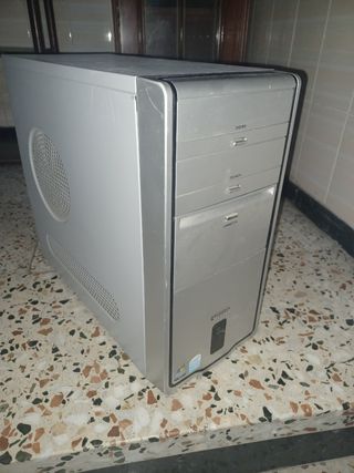 Torre para ordenador de sobremesa con un diseño moderno.dual core ,3 gigas de ram,350 gigas de disco duro y Windows 7. - Panel frontal con acabado en negro y detalles plateados. - Bahías para unidades ópticas y discos duros.