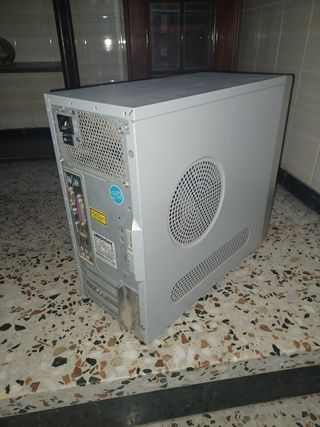 Torre de ordenador Medion en color gris y plata. Diseño vertical.pentium d ,4 gigas de ram ,Windows Xp y disco duro de 350 gigas. - Frontal con bahías para unidades ópticas. - Rejilla de ventilación lateral.