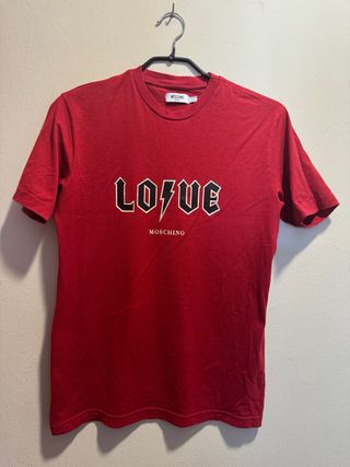 Lote de dos camisetas de la marca Moschino Jeans. - Camiseta roja con estampado LOVE y camiseta negra con estampado MOSCHINO. - Talla L (vienen estrechas).
