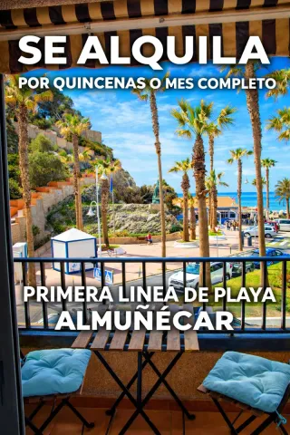 Alquiler de invierno: Disponible desde ahora hasta el 30 de junio de 2026 y desde el 16 de septiembre de 2026 hasta finales de junio de 2027 Amplio apartamento de 3 dormitorios en primera línea de playa con vistas al mar en Almuñécar Ubicado en una de las zonas más privilegiadas de Almuñécar, este atractivo apartamento en primera línea de playa ofrece una excelente combinación de amplitud, comodidad y unas inmejorables vistas al Mediterráneo. Su orientación sur garantiza una gran entrada de luz natural durante todo el día, creando un ambiente cálido y acogedor ideal para disfrutar durante los meses de invierno. La vivienda destaca por su distribución funcional y su terraza con vistas directas al mar, perfecta para relajarse y disfrutar del entorno costero. Características principales 3 dormitorios 1 baño completo + 1 aseo Totalmente amueblado Salón-comedor amplio y luminoso Terraza no acristalada con vistas al mar Cocina independiente totalmente equipada Aire acondicionado Edificio con ascensor Jardín comunitario Orientación sur Mascotas pequeñas bajo consulta Gastos a consultar Distribución interior cómoda y funcional La vivienda dispone de un salón-comedor espacioso y muy luminoso, con acceso directo a la terraza, creando un ambiente ideal tanto para el día a día como para momentos de descanso con vistas al mar. La cocina, independiente y completamente equipada, ofrece un espacio práctico con buena capacidad de almacenamiento. Dormitorios bien proporcionados El apartamento cuenta con tres dormitorios: Dormitorio principal amplio y luminoso Segundo dormitorio ideal para invitados o uso familiar Tercer dormitorio versátil, perfecto como despacho o dormitorio adicional La vivienda dispone de un baño completo y un aseo adicional, aportando mayor comodidad. Terraza y entorno exterior Uno de los principales atractivos de la propiedad es su terraza con orientación sur y vistas directas al mar. Un espacio ideal para: Disfrutar de comidas al aire libre Relajarse c