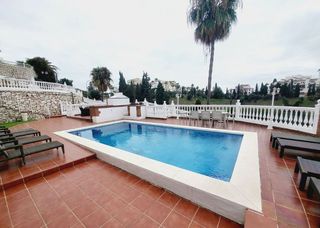 DISPONIBLE A PARTIR DEL 15 DE OCTUBRE. NO SE ALQUILA PARA LARGA TEMPORADA, SOLO POR MESES. Con vistas al mar Mediterráneo, esta bonita casa de vacaciones ubicada justo antes de llegar a Mijas Pueblo impresiona a los huéspedes con sus fantásticas vistas al mar y la montaña. Esta encantadora villa es realmente el lugar perfecto para descansar y relajarse. Se encuentra en una zona tranquila en residencial privada, escondida en las colinas, es íntima y acogedora. La propiedad esta a estrenar semi-reformada, distribuida en 3 plantas consta de 2 salones con chimenea en la casa principal, una cocina equipada, en la planta de abajo hay un pequeño apartamento independiente, con una cocina, habitación, su propio salón y baño, en la planta de arriba son 3 dormitorios y medio con una pequeña habitación para los niños, todas las habitaciones tienen los baños en suite y aparte hay 2 cuartos de baño mas. La casa ofrece una zona exterior con piscina privada. Los servicios adicionales incluyen aire acondicionado en cada habitación y salones, Wi-Fi, aparcamiento incluido para 6 coches. La propiedad está ubicada a 2 minutos en coche del pueblo y a 10 min. de la playa, además tiene una parada de bus al lado.