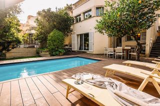 Casa de lujo con interiores escandinavos en Son Espanyolet-Disponible para alquiler temporal. Situado en el lujoso barrio del Pueblo Español, esta extraordinaria casa combina la arquitectura mediterránea atemporal con una refinada estética escandinava moderna. Diseñada originalmente en 1981 por un reconocido arquitecto español y renovada completamente en 2019 por la prestigiosa interiorista europea Lotta Agaton, la propiedad ofrece una fusión única de historia, sofisticación y confort. Con una superficie habitable de aproximadamente 250 metros cuadrados, la vivienda está concebida para disfrutar de una vida interior-exterior fluida. El suelo de piedra caliza marroquí golpeada a mano se extiende por toda la casa, brindando una sensación natural y acogedora. Las amplias ventanas francesas de diseño danés inundan de luz natural los espacios interiores y se abren a un patio con capacidad para 14 comensales, ideal para cenas al aire libre. La cocina, hecha a medida in situ por un ebanista sueco, cuenta con encimeras de mármol mallorquín, una gran mesa para 10 personas y grifería de alta gama de Dornbracht (Alemania). El salón está amueblado con piezas icónicas de Dux (Suecia) y Living Divani (Italia), y los dormitorios ofrecen máxima comodidad con una cama Hästens en la suite principal y camas de lujo de IKEA en los cuartos adicionales. Entre sus prestaciones destacan la calefacción por suelo radiante en toda la casa, aire acondicionado en todas las estancias y sistema de sonido Sonos integrado. En el exterior, una piscina privada de 9 x 4,5 metros rodeada de muebles de diseño danés de Skagerak y Fritz Hansen crea un ambiente exclusivo. Un garaje de 140 metros cuadrados completa la propiedad. Otros detalles de diseño incluyen lámparas y mesas de Cassina (Italia) y alfombras de Layred, todo seleccionado con precisión para una experiencia de vida armoniosa y lujosa.