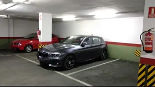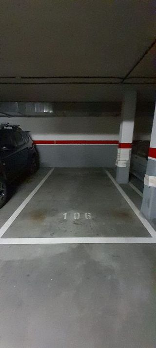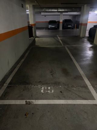 Amplia plaza de garaje sin columnas, con muy fácil aparcamiento. Los m2 de la plaza son aproximados, no la he medido. Vigilancia y ascensor al lado de la plaza.