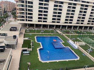 Soleada vivienda disponible en alquiler temporal con amplia terraza con bonitas vistas al parque, en complejo con piscina y conserje, a solo 50 metros de la playa de la Patacona (Valencia). Incluye garaje. Zona con todos los servicios y excelente comunicación. Vive a un paso del mar en este encantador piso situado a escasos metros de la Playa de la Patacona, en una de las zonas más demandadas del litoral valenciano, en la ciudad de Valencia. Vivienda muy cuidada, con buena distribución (sin pasillo) y con espacios bien aprovechados. Destaca por su gran terraza cubierta con suelo de tarima y vistas al parque sin ningún edificio delante. La terraza dispone de toldos. La vivienda cuenta con un amplio salón con moderna cocina office y salida a la terraza, un amplio dormitorio con gran armariada y un baño completo. En la entrada distribuidor con armario y dispone también de un armario para lavadora y termo. La vivienda se encuentra en complejo privado con piscina, conserje y vigilancia 24 horas, parque infantil, situado a escasos 50 metros de la playa. Dispone de parquet, aire acondicionado por conductos frío calor, pintura lisa, videoportero, armarios empotrados, cocina amueblada y equipada con lavavajillas, puerta blindada, acceso minusválidos y ventanas climalit doble cristal oscilobatientes excelente aislamiento con rotura de puente térmico y acústico. Zona con todos los servicios y excelente comunicación: Supermercados Consum y Mercadona a tan solo 5 minutos, gimnasio Suma con piscina, spa y paddel, farmacia, centro de salud, escuela infantil, colegio de primaria e institutos de secundaria y grado superior, y a 50 metros el paseo marítimo con terrazas, conocidos restaurantes y la playa. Universidad de Valencia y la Universidad Politécnica a 15 minutos andando. Comunicación con linea nº 31 de autobús de la EMT en la puerta directamente al centro de la ciudad, además de otras líneas. Se encuentra a una escasa distancia de 15 minutos en coche al centro histórico