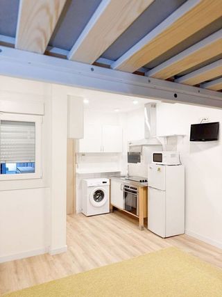 Características destacadas: -Vivienda tipo loft de un solo ambiente, muy bien aprovechado, 34 m² con cédula de habitabilidad. -Diseño moderno con techos altos y vigas de madera originales. -Cocina equipada con electrodomésticos: horno, vitrocerámica, lavadora, nevera y microondas. -Zona de descanso elevada tipo altillo, con sofá y zona de estar debajo. -Decoración cálida y funcional, lista para entrar a vivir o alquilar. -Finca del año 1900, con el encanto de la arquitectura original barcelonesa. -Segunda planta en finca sin ascensor, muy luminosa y tranquila.