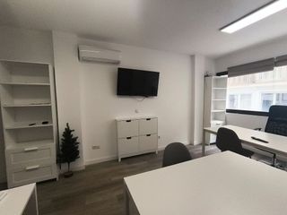 oficina reformada, amueblada en el centro. El edificio está en proceso de reforma integral, la oficina se ha reformado y amueblado, con aire acondicionado frio-calor, suelos de parqué, muebles a estrenar, se puede modificar e incluso instalar toma de agua sin coste alguno para el inquilino, contrato de 5 a 7 años, agua y comunidad incluidos en el precio de alquiler, aseos comunitarios por planta. se piden 2 meses de fianza, mes corriente y mes de honorarios de agencia inmobiliaria, se piden garantías de pago y laborales demostrables. [IW].