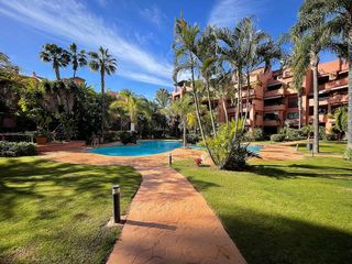 Amplio apartamento a solo 100 metros de Puerto Banús, una ubicación inmejorable tanto para vivir todo el año como para inversión, gracias a su alta demanda y excelente rentabilidad. La vivienda cuenta con 140 m² construidos, distribuidos en 3 dormitorios y 2 baños, uno de ellos en suite. Destaca su gran salón-comedor con chimenea, muy luminoso, con salida directa a una terraza acristalada, ideal para disfrutarla durante todo el año. La propiedad tiene orientación sureste y, al ser esquina, disfruta de una excelente entrada de luz natural durante todo el día, además de agradables vistas a la piscina y a las zonas comunes. Dispone de cocina amueblada y totalmente equipada, suelos de mármol y ventanas de aluminio, aportando confort y durabilidad. El residencial ofrece zonas comunes muy bien cuidadas, con gran zona ajardinada, piscina comunitaria, zona de parking comunitario y pequeño parque infantil, lo que lo convierte en un entorno ideal tanto para familias como para alquiler vacacional o de larga temporada. Una oportunidad única en una de las zonas más demandadas de Marbella.