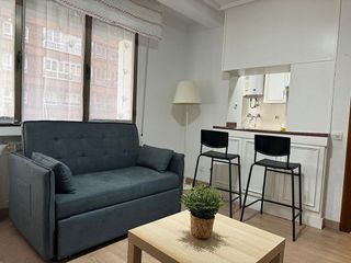 APARTAMENTO AMUEBLADO NUEVO Y RECIEN REHABILITADO EN ZONA CAMPOS. Se encuentra a 6 minutos andando del Paseo de Begoña y a otros 6 minutos andando de la Playa de San Lorenzo. REQUISITOS IMPRESCINDIBLES: INGRESOS DEMOSTRABLES SUPERIORES A 2.500. -€ PORQUE LA PROPIEDAD HACE "SEGURO DE IMPAGO". También se requieren 2 Meses de Fianza, y NO SE ADMITEN MASCOTAS. Se trata de una vivienda situada en la primera planta de un edificio con ascensor. El apartamento tiene unos 35m. útiles y al exterior solamente da el dormitorio. La vivienda consta de 1 dormitorio, sala-cocina americana amueblada con todos los electrodomésticos (vitro, microondas, lavadora, lavavajillas, combi, microondas, y termo eléctrico para el agua caliente sanitaria), y baño con gran plato de ducha y mampara. El apartamento dispone de puerta de entrada blindada, suelos de parquet flotante laminado, calefacción eléctrica, ventanas de pvc con doble acristalamiento y oscilo. Ideal para una sola persona. Los gastos correspondientes a la comunidad de propietarios ya están incluidos en la renta (incluso todo el consumo de agua fría).