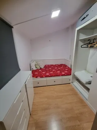 Se alquila habitación INDIVIDUAL, amueblada. En piso grande de 5 hab. Espacio tranquilo, limpio, ordenado y respetuoso. Por petición de las compañeras, solo se aceptarán solicitudes de mujeres. Las únicas zonas comunes son los 2 baños y cocina-comedor. El precio del alquiler incluye: - Luz, agua, gas e Internet 1GB - Limpieza semanal de zonas comunes La habitación está equipada con: - Cama individual con canapé - Colchón, almahoda, sábanas. Todo precintado a estrenar. - Pequeño escritorio y silla - Mesita de noche - Armario empotrado - Smart TV - Pequeña nevera individual - Microondas Fianza 2 mensualidades NO NEGOCIABLES