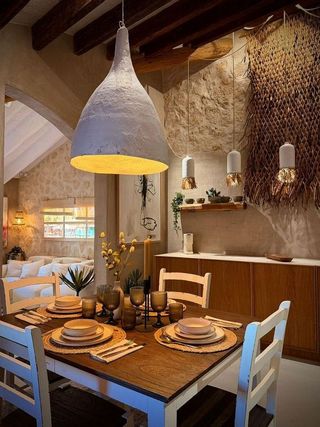 Esta propiedad única ha sido completamente acabada con revoco de arcilla de alta calidad, creando una atmósfera de vivienda especialmente cálida y acogedora. El apartamento dispone de dos baños, 1,5 dormitorios, una amplia cocina americana con mesa de comedor y una zona de estar abierta. Uno de los puntos destacados es el dormitorio principal con baño en suite y acceso directo a una pequeña terraza privada con vistas a la iglesia de Llucmajor. El apartamento está equipado con dos conexiones de TV vía satélite, aire acondicionado Bosch (frío/calor) y radiadores eléctricos de pared, garantizando un confort óptimo también durante los meses de invierno. Disfrute de la absoluta tranquilidad en su terraza privada o sumérjase directamente en la animada vida del mercado bajo su vivienda: en la plaza principal se celebra tres veces por semana un mercado de productos frescos y encontrará además ocho restaurantes, cafeterías y tiendas - el auténtico estilo de vida mallorquín a la puerta de casa. El edificio consta únicamente de dos unidades residenciales, lo que ofrece un alto nivel de privacidad. La fachada exterior del edificio ha sido completamente renovada. Características: Zona de estar abierta Cocina americana Mesa de comedor 1 dormitorio de invitados / despacho 1 dormitorio principal 1 baño de invitados con ducha 1 baño en suite Terraza 2 trasteros Vestidor con amplio armario 2 × aire acondicionado Bosch (frío/calor) Radiadores eléctricos de pared Superficie habitable: aprox. 97 m².