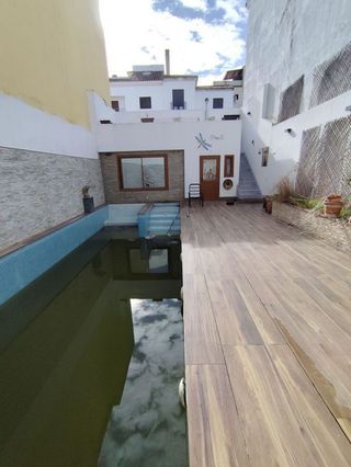 Casa compuesta de vivienda en planta baja más dos apartamentos y en planta primera tres viviendas de dos dormitorios cada una, dos azoteas privadas y garaje de 16m2. Instalaciones de luz y agua nuevas (reformado). PLANTA BAJA: 1. Vivienda con cuatro habitaciones, salón-comedor, cocina, baño y patio // 2. Apartamento de un dormitorio, salón, cocina y baño // 3. Apartamento de un dormitorio, salón-comedor (cueva), cocina y baño PLANTA PRIMERA: 1. Vivienda de dos dormitorios, salón, cocina y baño // 2. Vivienda de dos dormitorios, salón, cocina y baño, y patio interior // 3. Vivienda de dos dormitorios, salón, cocina y baño.