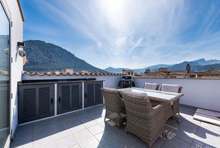 Fantástico ático, de generosas dimensiones y gran terraza privada en la azotea, situado en pleno corazón del pueblo de Pollença, a pocos pasos de la plaza Mayor y de todos los comercios, cafés y restaurantes. La vivienda, con una antigüedad aproximada de 12 años, se encuentra en excelente estado de conservación y lista para entrar a vivir. Destaca su amplio y luminoso salón-comedor, con grandes ventanales que permiten la entrada de abundante luz natural durante todo el día, creando un ambiente cálido y acogedor. La cocina, totalmente equipada, es independiente pero está cómodamente conectada con el salón-comedor, ofreciendo una distribución práctica y funcional que facilita el día a día. La propiedad dispone de tres espaciosos dormitorios dobles. El dormitorio principal cuenta con baño en suite, mientras que los otros dos dormitorios comparten un baño completo independiente. Todas las estancias son de generosas dimensiones, lo que convierte esta vivienda en una opción ideal tanto como residencia habitual como para uso vacacional. El apartamento está situado en la última planta del edificio (segundo piso), lo que garantiza mayor privacidad y tranquilidad. Desde el salón se accede, a través de una escalera interior, a una magnífica terraza privada en la azotea de aproximadamente 50 m². Este fantástico espacio exterior ofrece preciosas vistas abiertas al Puig de María y a gran parte de la Serra de Tramuntana. La terraza cuenta con espacio más que suficiente para zona de comedor exterior, área de relax y solárium, además de disponer de zona de barbacoa y un práctico jacuzzi, convirtiéndose en el lugar perfecto para disfrutar del clima mediterráneo durante todo el año. La vivienda incluye también un cómodo trastero privado situado en la entrada del edificio, ideal para bicicletas y almacenamiento adicional. Entre sus calidades destacan el aire acondicionado frío/calor en todas las estancias y las ventanas de doble acristalamiento, que garantizan confort y eficienci