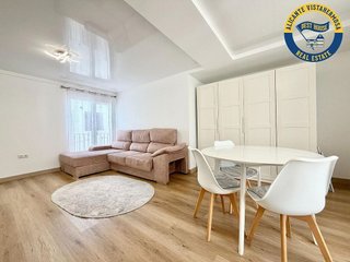 Hay viviendas que destacan por su equilibrio entre confort interior y espacios exteriores donde realmente disfrutar del día a día. Esta propiedad, adquirida en 2019 y reformada en 2024, ofrece precisamente esa combinación: funcionalidad, luminosidad y zonas al aire libre que marcan la diferencia. Desde el primer momento, la orientación sureste permite que la luz natural sea protagonista. Esta característica no solo mejora la sensación de amplitud, sino que también aporta calidez y bienestar a cada estancia, creando un ambiente acogedor durante todo el año. El salón y las habitaciones se benefician de esta luminosidad, especialmente gracias al amplio balcón con salida directa desde dos de las habitaciones hacia la fachada. Este espacio exterior se convierte en un lugar perfecto para comenzar el día, ventilar las estancias o simplemente disfrutar de un momento de tranquilidad. La vivienda cuenta con una cocina tipo americana, completamente amueblada y equipada con vitrocerámica y horno eléctrico. Dispone de 10 espacios de almacenamiento, lo que facilita una organización eficiente y cómoda en el día a día. Su diseño abierto permite integrar la cocina con la zona de estar, favoreciendo la interacción y aprovechando mejor el espacio. El baño, funcional y bien resuelto, está equipado con plato de ducha, lavabo y bidet, cubriendo todas las necesidades con un diseño práctico. Uno de los grandes valores añadidos de esta propiedad es su acceso a una terraza prácticamente privada. A través de una escalera exterior se accede a este espacio superior, donde encontramos una pérgola y una barbacoa de leña. Este entorno es ideal para reuniones, comidas al aire libre o simplemente para desconectar en un ambiente más íntimo. En cuanto a equipamiento, la vivienda está preparada para ofrecer confort durante todo el año. Cuenta con calefacción eléctrica y aire acondicionado tipo split inverter, con equipos instalados en dos habitaciones, además de sistema frío/calor. También dispone de c