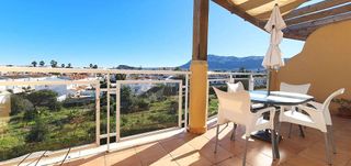 Ático con vistas espectaculares en Las Marinas, km 2 Descubre este magnífico ático situado en el km 2 de Las Marinas, una ubicación privilegiada a pocos minutos del centro de Dénia y de todos los servicios. Desde cada rincón de la vivienda se disfrutan unas vistas impresionantes al mar, al Montgó y al castillo, creando un entorno único lleno de luz natural y belleza. La vivienda cuenta con dos amplios dormitorios, cada uno con su baño en suite y numerosos armarios empotrados, ofreciendo un gran confort y espacio de almacenamiento. El suelo de mármol y la chimenea en el salón-comedor aportan elegancia y calidez al ambiente. La gran terraza rodea toda la casa y ofrece varios espacios para disfrutar del clima mediterráneo: zona de barbacoa, comedor exterior y rincones de relax con vistas al mar y la montaña. Tiene acceso directo tanto desde la cocina como desde el comedor, facilitando la vida exterior. Equipada con splits de aire acondicionado en el salón y en ambos dormitorios, la vivienda garantiza confort durante todo el año. Desde el dormitorio principal se puede contemplar el mar en todo su esplendor, haciendo cada amanecer una experiencia especial. La urbanización dispone de una amplia piscina comunitaria, jardines cuidados y un quiosco para el disfrute de los residentes. Todo ello en una zona tranquila, muy cerca del pueblo y de la playa. Este ático combina lujo, comodidad y unas vistas incomparables, perfecto para quienes buscan un hogar luminoso y con encanto en una de las mejores zonas de Dénia.