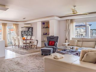 Presentando un lujoso ático que simboliza lo mejor de la Costa del Sol, este excepcional ático ofrece una atractiva mezcla de elegancia, comodidad y impresionantes vistas panorámicas al mar. La orientación sur-facing de la propiedad garantiza abundante luz natural durante todo el día, mientras que la amplia terraza cubierta ofrece el entorno perfecto para remojar en las impresionantes vistas. Diseñado para aquellos que aprecian tanto la relajación como la sofisticación, este ático promete un estilo de vida estimulante en una comunidad vibrante y buscada. El diseño interior está cuidadosamente arreglado, con dos dormitorios de tamaño generoso, cada uno con armarios empotrados, y dos baños modernos, incluyendo un elegante baño en suite. Las zonas de estar y comedor están completamente amuebladas en un estilo contemporáneo, conectando perfectamente a la terraza y ofreciendo vistas al mar y al jardín. La cocina totalmente equipada está equipada con electrodomésticos de alta calidad y una cómoda barra de desayuno, ideal para cenas casuales o huéspedes entretenidos. Adyacente a la cocina, un balcón cerrado con vistas a la vegetación exuberante, proporcionando un lugar tranquilo para el café matutino o la reflexión tranquila. Los inquilinos se benefician de una variedad de comodidades premium dentro de esta comunidad cerrada, incluyendo seis piscinas comunitarias, una de las cuales está climatizada para disfrutar durante todo el año, jardines comunitarios hermosos y un garaje privado. La propiedad está en excelente estado y cuenta con características como aire acondicionado, calefacción central, y un cuarto de lavandería dedicado, garantizando comodidad y practicidad en cada estación. Perfectamente posicionado para comodidad, el ático se encuentra cerca de una gran variedad de comodidades, incluyendo tiendas, restaurantes, escuelas, campos de golf y enlaces de transporte. Su proximidad a la ciudad, el puerto y las instalaciones de ocio lo convierten en una opción ideal