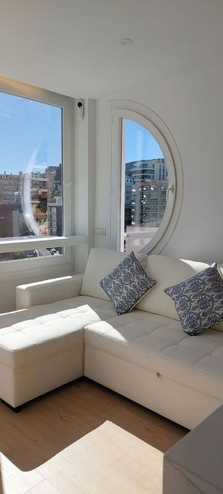 Luminoso ático con vistas al mar y al puerto en Santa Catalina-Disponible para alquiler temporal. Este hermoso apartamento inundado de luz está confortablemente amueblado. Se encuentra en el séptimo piso con ascensor y tiene una gran terraza, que está parcialmente cubierta y ofrece una maravillosa vista sobre Palma; hacia la catedral y también al mar y puerto. Se divide en una cocina totalmente equipada con acceso a la terraza además comedor, sala de estar que tiene un sofá-cama y con grandes ventanas correderas y, por lo tanto, también con acceso a la terraza. Además, hay un dormitorio doble y un baño con ducha. El apartamento tiene una ubicación muy céntrica, adyacente al área de Santa Catalina y cerca de supermercados, restaurantes y bares. Características adicionales: una conexión rápida a Internet está incluida en el precio del alquiler.