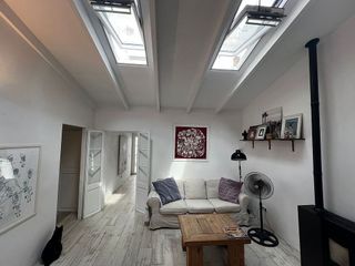 Ático renovado con gran terraza en Santa Catalina-Ático renovado en un estilo escandinavo moderno. Amplio apartamento con techos altos y muchas ventanas. Al entrar, encontrará un amplio y elegante salón/comedor con cocina abierta. También hay dos dormitorios grandes con armarios empotrados, un amplio salón, un pequeño trastero y un baño. El apartamento cuenta con hermosos y luminosos suelos de madera, ventanas nuevas con marcos elegantes negros, vigas de madera bien cuidadas en el techo y puertas de vidrio. Lo único es la increíble terraza de 30 m² con salida directa desde la sala de estar. Aquí podrá disfrutar de cálidas noches de verano en el corazón de la popular zona de Santa Catalina de Palma. ¡La vida moderna en el centro de la ciudad es lo mejor! El apartamento se vende completamente amueblado. Se vende en EXCLUSIVA vía BUY A HOME MALLORCA.