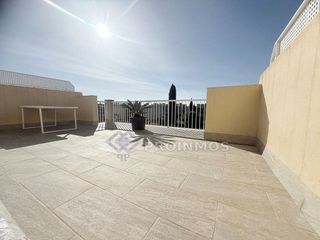 Zona Colegios. Ático de unos 100m2 aprox. con terraza en planta y terraza solarium en complejo residencial con piscina comunitaria. Este ático tiene una superficie de unos 100 m² aprox. , salón comedor de 25 m² aprox. , cocina amueblada y semi-equipada, coladuria, 3 habitaciones, armarios, 2 baños (1 en suite), suelos de parquet, climalit, aire acondicionado frio/calor, terraza de 80m2 aprox. , trastero, 1 plaza de garaje, piscina comunitaria. Sin muebles.