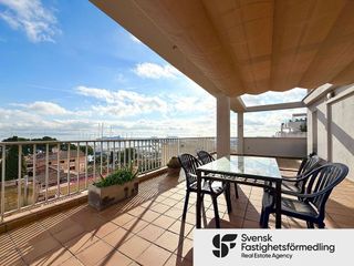 Se alquila este exclusivo ático ubicado en la zona de Cala Major, que destaca por sus impresionantes vistas despejadas al mar y a la montaña. La vivienda ocupa toda la planta, lo que garantiza un alto nivel de privacidad y tranquilidad. A tan solo unos escalones del rellano del piso se encuentra la piscina comunitaria ubicada en una amplia terraza con tumbonas. El ático se alquila completamente amueblado y listo para entrar a vivir. Dispone de un luminoso salón-comedor de concepto abierto, integrado con la cocina y con acceso directo a una terraza privada con vistas al mar. También cuenta con tres dormitorios (dos dobles y uno individual) y dos baños completos. El dormitorio principal incorpora baño en suite y amplios armarios empotrados, ofreciendo comodidad y una excelente capacidad de almacenaje. Entre sus prestaciones, destaca el aire acondicionado así como radiadores y ventiladores de techo en todas las estancias, también ofrece una plaza de garaje y trastero. Se ofrece en alquiler de larga duración. Los gastos de agua, electricidad y tasa de residuos no están incluidos. No se admiten mascotas. Ubicado a tan solo 150 metros de la playa, a unos metros de tiendas  y restaurantes y del transporte público, este ático representa una oportunidad única para quienes buscan disfrutar de una vida mediterránea en un entorno privilegiado y junto al mar. Para más información o concertar una visita, no dude en contactarnos.