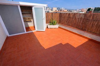 Oportunidad! ATICO en venta en pleno centro con terraza y ascensor Presentamos este ático de tres habitaciones dobles en pleno centro, una propiedad que combina amplitud en sus estancias y ubicación privilegiada con todos los servicios a pie de calle. En la entrada encontramos el amplio recibidor con un armario empotrado de gran capacidad, seguidamente avanzamos por un pasillo que acoge dos dormitorios dobles muy luminosos, y la cocina con salida a una galería para zona lavado y tendedero, la cocina tiene la amplitud para incorporar una mesa para 2-3 comensales. El salón comedor de 18m2 aproximadamente es amplio y con salida a un balcón que finaliza en una terraza semi-descubierta de unos 12m2 ( en la actualidad la terraza está con cerramiento de aluminio tanto en los laterales como en parte del techo). Esta opción de poder dejarla al descubierto te permitirá darte baños de sol directos desde la tumbona.; ). Las vistas despejadas ofrecen un paisaje barcelonés con la Sagrada Familia al fondo. , torre agbar, y la torre Maphre todo un lujo. La orientación sur oeste la mas envidiable pues el sol está garantizado en el interior de la vivienda en los días despejados. La luz natural inunda el salón comedor. Desde el salón comedor, a través de un distribuidor, accedemos a el dormitorio principal, que tiene una ventana que da a la terraza, y en este mismo distribuidor encontramos un pequeño armario empotrado y nos conduce a la sala de baño que tiene una ventana y una bañera. El baño tiene un tamaño ideal y tiene espacios ideales para poder colocar un buen armario toallero. Este ático realmente tiene mucha capacidad de almacenaje con todos sus armarios. ! Aunque la vivienda es totalmente funcional y lista para entrar a vivir, y tiene un potencial de actualizarla a tu gusto que puede transformar este piso en un ático de diseño. La vivienda cuenta con suelos de terrazo, carpintería interior de madera, aire acondicionado con bomba de aire frio y caliente. Ascensor. Ven a verlo.