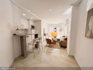 AMUEBLADO USANDO INTELIGENCIA ARTIFICIAL - SE VENDE SIN MUEBLES ¿Buscas el cielo de Torrevieja? Este espectacular ático es la combinación perfecta entre diseño moderno y libertad exterior. Ubicado a solo cinco minutos caminando del mar, vivirás en un entorno donde el sol brilla casi todo el año. Tu oasis privado te espera: disfruta de un exclusivo Solárium de 25 m2 que puedes convertir en tu gimnasio personal, una zona para barbacoas o simplemente un espacio chill-out bajo las estrellas. Con dos dormitorios luminosos y un baño diseñado con acabados de alta gama, este hogar redefine lo que significa estar cómodo. Además, se vende sin muebles para permitirte darle tu toque personal (las imágenes generadas por IA muestran su increíble potencial). La cocina americana integrada facilita esas cenas inolvidables antes de salir al animado paseo marítimo. No pierdas esta oportunidad única: invierte inteligentemente en una propiedad situada en la mejor ubicación posible. Torrevieja ofrece más que solo casa; es disfrutar cada día rodeado por playas hermosas mientras formas parte vibrante comunidad internacional junto a sus diversas actividades recreativas. Con más de mil días soleados al año y fácil acceso desde el aeropuerto cercano - ¡esto no es solamente adquirir bienes raíces! Es adoptar toda una forma accesible y plena vida costera.