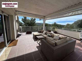 BG442. BEGUES CENTRO. Les presentamos su nuevo hogar, la oportunidad de disfrutar de una CASA ADOSADA esquinera, de obra vista, con terraza y zona comunitaria con piscina, en el centro de Begues, con una ubicación inmejorable para toda la familia. La vivienda se ubica en una comunidad de solo 12 vecinos, con amplia y cuidada zona comunitaria, con piscina y gran zona ajardinada. La vivienda dispone en planta baja de recibidor, salon comedor con chimenea de obra y salida a terraza privada (60m), luminosa cocina office, con espacio para comedor de diario, y acceso a lavadero y despensa (preinstalación de descalcificador). Desde el comedor podemos acceder a la terraza esquinera, bien orientada y con barbacoa de obra, perfecta para disfrutar del exterior. En planta primera, dispone de habitación suitte (armario empotrado) y baño con gran ducha de obra (renovada), dos habitaciones dobles (con armario empotrado) y baño renovado, con bañera hidromasaje. En planta segunda, cuenta con la buhardilla que dispone de habitación/despacho con cerramiento de aluminio, trastero y salida a terraza solarium. La terraza principal que envuelve toda la vivienda dispone de tarima de madera, barbacoa de obra y toldo. La amplia zona comunitaria completa el encanto de esta vivienda pues cuenta con un bonito y cuidado jardín y piscina. Dispone de calefacción a gas natural (caldera renovada), suelos de parquet de madera, carpintería interior lacada en blanco, carpinteria de aluminio blanco y mosquiteras. Luz natural todo el dia (por su orientación sur este). Parking doble (dos coches), con armario ignífugo, en garaje comunitario. En definitiva, su nuevo hogar con todas las comodidades y con una ubicación inmejorable, ideal para familias. En Solbegues Immobiliaria desde 2007 nuestro objetivo es hacer realidad su sueño, encontrar su nuevo hogar. Nuestra experiencia avala nuestra gestión transparente, eficaz, completa y personalizada, nos preocupan todos los detalles para garanti