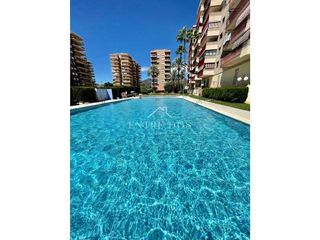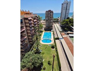 NO ALQUILER VACACIONAL ¡Descubre tu nuevo hogar en este espectacular apartamento en primera línea de playa! Situado en la octava planta, éste amplio y luminoso piso de 110 m² construidos ofrece unas vistas impresionantes. Cuenta con 4 dormitorios, dos 2 baños completos, cocina y salón. Completamente amueblado y equipado, listo para entrar a vivir. Además cuenta con bomba de calor/frío para tu confort durante todo el año. Incluye una plaza de garaje y trastero. La urbanización cuenta con piscina, jardín y zona deportiva, perfectos para disfrutar del clima y la vida al aire libre. Además, todos los servicios están a pocos metros, lo que garantiza comodidad en tu día a día. No dejes pasar la oportunidad de vivir en este maravilloso piso en una ubicación inmejorable. ¡Contáctanos para más información y ven a verlo!