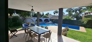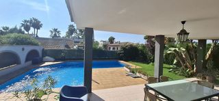 ¿Buscas vivir junto al mar? Narsan te ofrece la perla de esta reputada urbanización para este verano en el mes de Julio, a tan solo 25 metros de la arena. La vivienda se divide en dos plantas, con 530 metros de vivienda y 1.126 metros de parcela. En la planta 0 hay una cocina totalmente equipada muy amplia. Después nos encontramos con el magnífico salón donde poder relajarse o simplemente comer. Al lado hay una estupenda terraza cubierta con muchísima luz, con vistas directas al jardín. En esta misma planta hay 3 habitaciones, 3 baños y un despacho. Bajamos de planta y ahí tenemos, por así decirlo, un gran apartamento con 4 habitaciones, un salón con cocina que da directo al jardín y 3 baños completos. Desde esta misma planta se accede al garaje. ¡ Y ahora el plato fuerte! Su increíble jardín donde te sentirás en un oasis. Es el lugar donde más tiempo pasarás para disfrutar con amigos y familia del buen tiempo, de la gran piscina y de su terraza con barbacoa. En la parte delantera hay una zona de juegos para los más peques. Todas las habitaciones tienen armarios empotrados y radiadores eléctricos. La vivienda tiene aire acondicionado y ventiladores. Los salones disponen de una chimenea cada uno. En definitiva, si buscas pasar un verano en una super villa, pensamos que ésta puede ser la vivienda adecuada para ello. Disponible solo en Julio por 15.000€. Ideal para dos familias. Si desea más información no dude en contactar a Grupo Inmobiliario Narsan. Honorarios de la inmobiliaria actuante no incluidos en el precio.