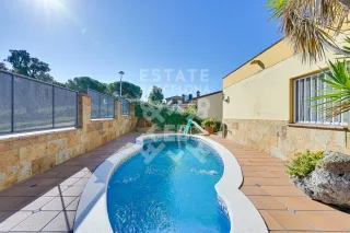 Fantástica torre con piscina en la única urbanización de Blanes que es casco urbano, rodeada de zona verde, con transporte público, a 5 minutos en coche y 20 minutos a pie del centro de Blanes La casa distribuida en 2 plantas consta de 200 m2. En la planta baja de entrada a la vivienda encontramos la cocina office totalmente equipada, el precioso salón comedor con chimenea y salida a terraza, 1 habitación suite con baño completo muy amplio, 1 habitación de matrimonio, 1 habitación individual y otro baño. Todo ello bañado de luz natural, ya que la casa es totalmente exterior y a 4 vientos. En la planta inferior ZONA DIAFANA