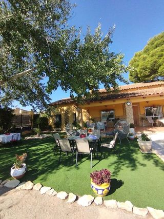 Se vende chalet de dos plantas con materiales de primera calidad a tan solo 20 minutos de Sevilla. La parcela tiene dos viviendas independientes, que se distribuyen en casa principal y casa de invitados (no se reflejan las fotografías). La vivienda principal está distribuida en 3 plantas, en la planta principal se accede por hall recibidor o por entrada de servicio por la cocina. La cocina consta de zona de office y comedor con rinconera de madera, despensa y acceso al baño de la planta baja. Luego pasamos al amplio salón de más de 50 m², con zona de descanso y otra de ocio, bien para jugar al billar y futbolin, o se puede utilizar de discoteca esta zona. En la planta superior, esta el amplio dormitorio principal de unos 25 m² con su armario empotrado, el baño tipo suite con bañera de hidromasaje hecha a medida, techos con espejos y amplia zona de movimientos sin llegar a molestarse entre los usuarios del mismo. Consta de 2 dormitorios más comunicados por un baño de uso común y un cuarto dormitorio independiente. Terraza en un dormitorio y en la fachada delantera en esta planta. En la planta bajocubierta se encuentra lóbrega con las instalaciones de agua caliente. También tiene acceso a terraza y vistas. Casa de invitados, cocina amueblada americana con acceso a salón, un dormitorio y un baño completo. Garaje cerrado. Piscina de 4*5 metros, zona de bar de piscina y cuarto de lavandería. La vivienda está pendiente de declaración de obra nueva para su inscripción en registro, pudiendo efectuarse al tener la construcción más de 6 años de antigüedad. SE ESCUCHAN OFERTAS.
