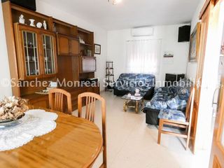 REFERENCIA 5027. CASA ADOSADA EN VENTA! Con 77 m2 de parcela y un total de 126 m2 construidos y distribuidos en dos plantas. La primera planta está compuesta por un luminoso salón-comedor, garaje, un aseo con posibilidad de ampliar a la ducha, cocina y patio. Seguidamente en la segunda planta se encuentran un total de cuatro dormitorios y un baño completo. Dispone de dos aparatos De aire acondicionado bomba f/c y calefacción de gasoil. ¡NO PIERDAS ESTA OPORTUNIDAD! y si esto no es lo que buscas visítanos en c/ Miguel de Unamuno 4, te ayudaremos a encontrarlo. Sánchez Monreal Servicios Inmobiliarios.