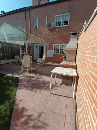 ¡Oportunidad única de vivir en una de las mejores zonas de Alcorcón! Se vende maravilloso chalet adosado en la exclusiva zona de Los Castillos, ubicado en la Avenida de las Flores, una zona residencial tranquila, bien comunicada y rodeada de todos los servicios. � Superficie total construida: 236 m² � Distribuido en 3 plantas + sótano/garaje � Planta principal: •Amplio porche con toldo tipo pérgola •Hall recibidor •Cocina independiente con zona office totalmente equipada •Aseo de cortesía •Salón-comedor con chimenea, muy luminoso, con salida directa a un gran patio privado con jardín, barbacoa y un encantador cenador cubierto � Primera planta: •3 dormitorios dobles con armarios empotrados •1 baño completo con plato de ducha •Suite principal con armario empotrado y baño privado con bañera � Segunda planta: •Amplia buhardilla de 36 m², con armario, ideal como zona de trabajo, dormitorio adicional o sala de juegos � Sótano: •Espaciosa bodega/almacén de 29 m² •Gran garaje privado con capacidad para varios vehículos y zona de almacenaje _ �️ Extras y calidades: •Calefacción individual por gas natural •Aire acondicionado •Carpintería interior de roble •Ventanas climalit, rejas de seguridad decorativas •Suelos de gres •Toldos instalados •Piscina comunitaria Una vivienda con todas las comodidades, perfecta para familias que buscan espacio, confort y calidad de vida, en una ubicación privilegiada de Alcorcón. � Muy cerca de colegios, zonas verdes, transporte público y todos los servicios necesarios. ACCESO RAPIDO A TODAS LAS CARRETERAS. � ¡No dejes pasar esta oportunidad! Llámanos para más información o concertar una visita.